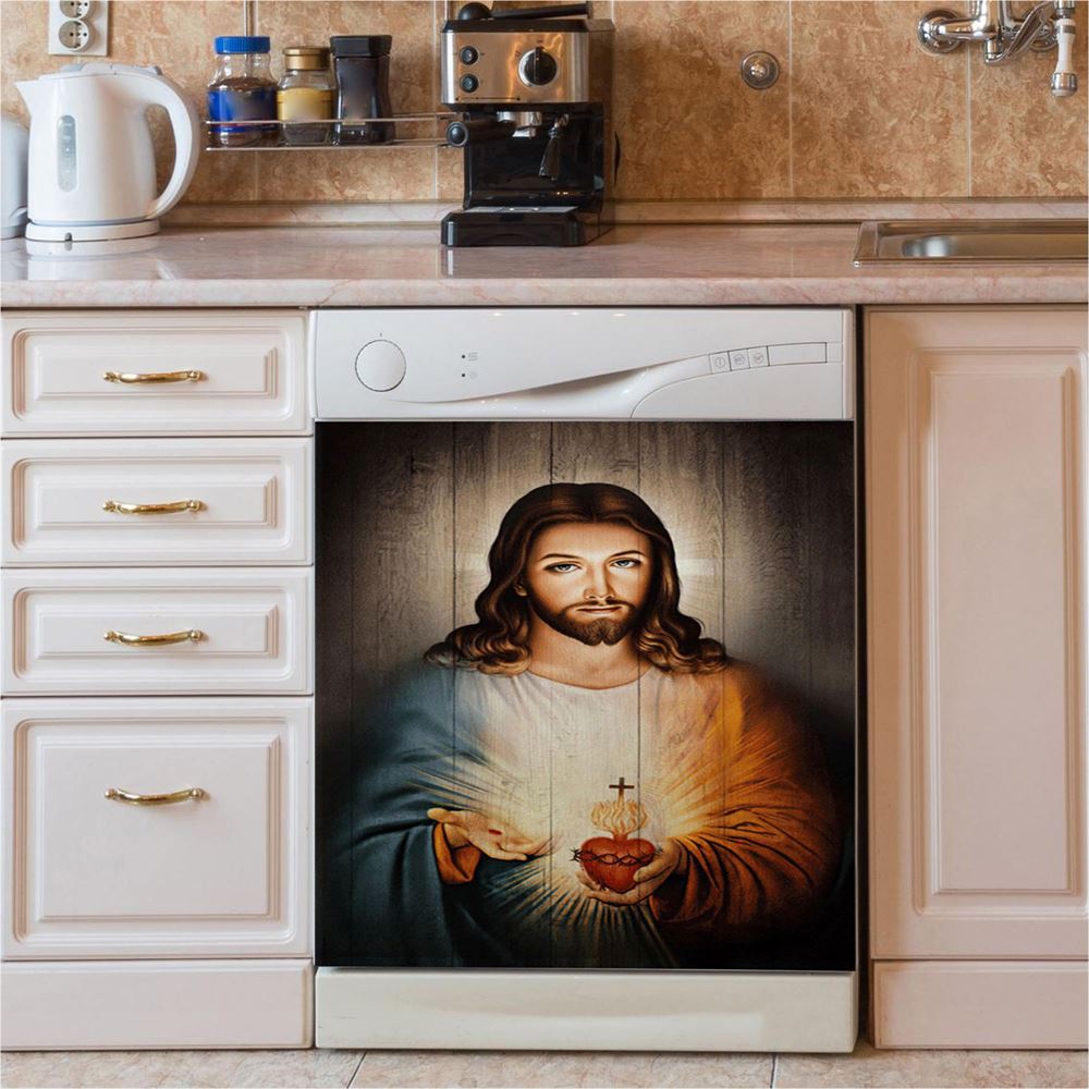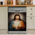 Stunning Heart Walking With Jesus Dishwasher Cover, Christian Dishwasher Wrap, Bible Verse Kitchen Decoration