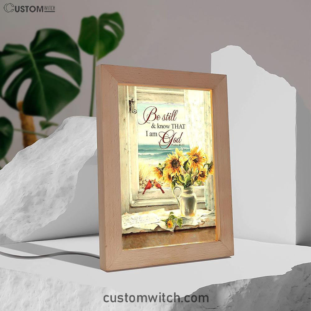 Sunflower Beach Be Still And Know That I Am God Frame Lamp Art - Christian Art - Bible Verse Art - Religious Home Decor