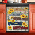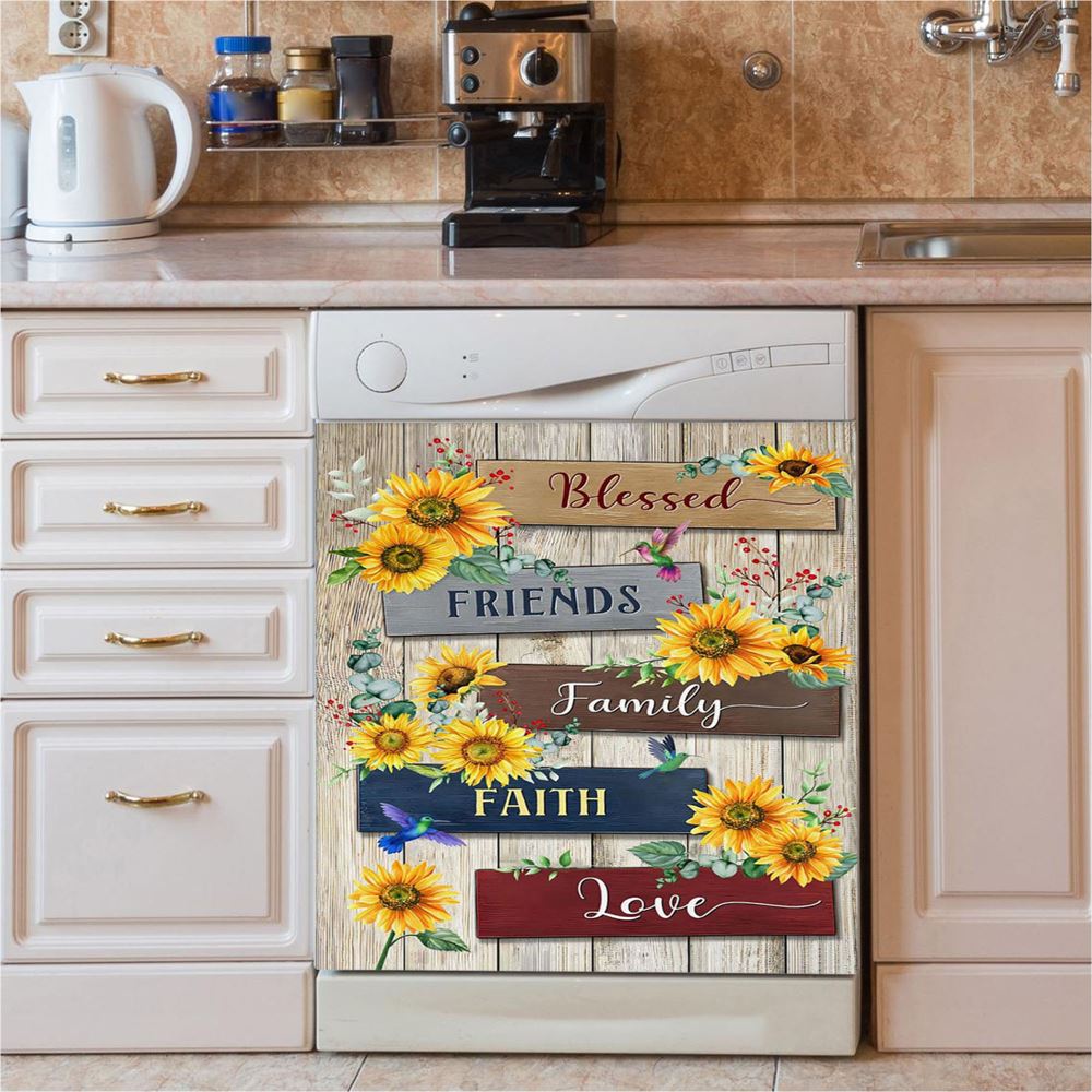 Sunflower Blessed Friends Family Faith Love Dishwasher Cover, Inspirational Dishwasher Wrap, Christian Kitchen Decoration