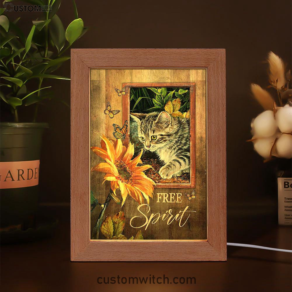 Sunflower Butterfly Cat Free Spirit Frame Lamp Art - Christian Art - Bible Verse Art - Religious Home Decor