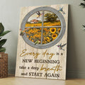 Sunflower Garden, Hummingbirds, Circle Window, Everyday Is A New Beginning Canvas, Christmas Gift for Christian