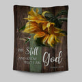 Sunflower Hummingbird Be Still And Know That I Am God Tapestry Art - Christian Art - Bible Verse Wall Art - Religious Home Decor