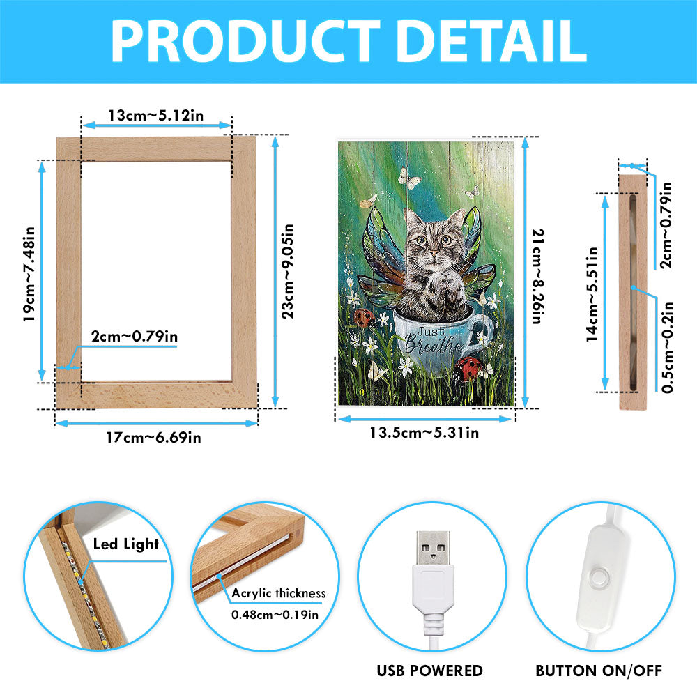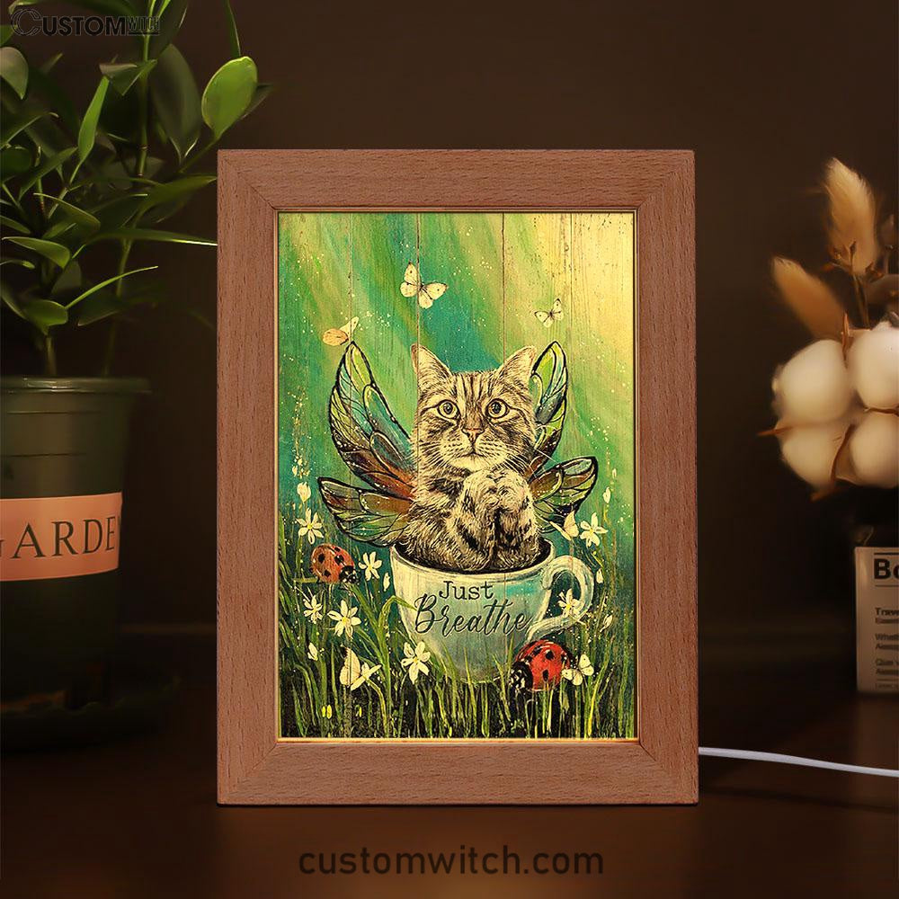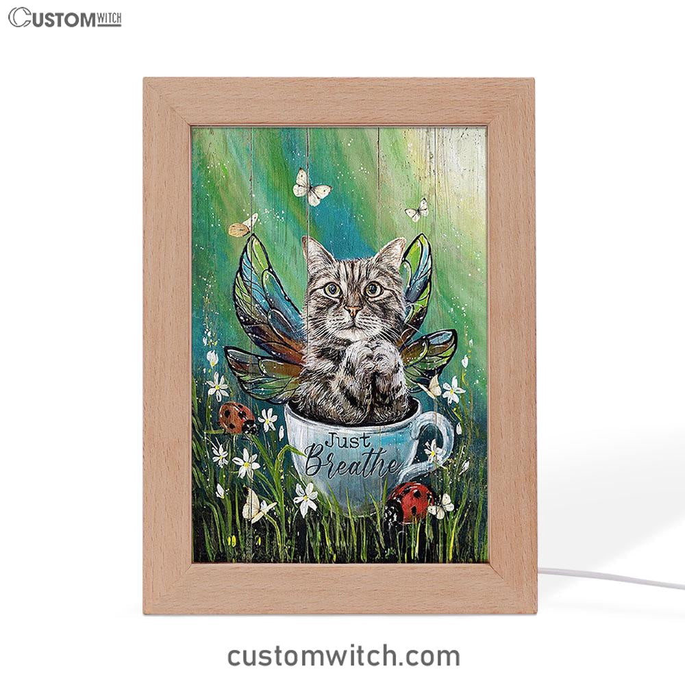 Tabby Cat Just Breathe Frame Lamp Art - Christian Art Decor - Gift For Cat Lover