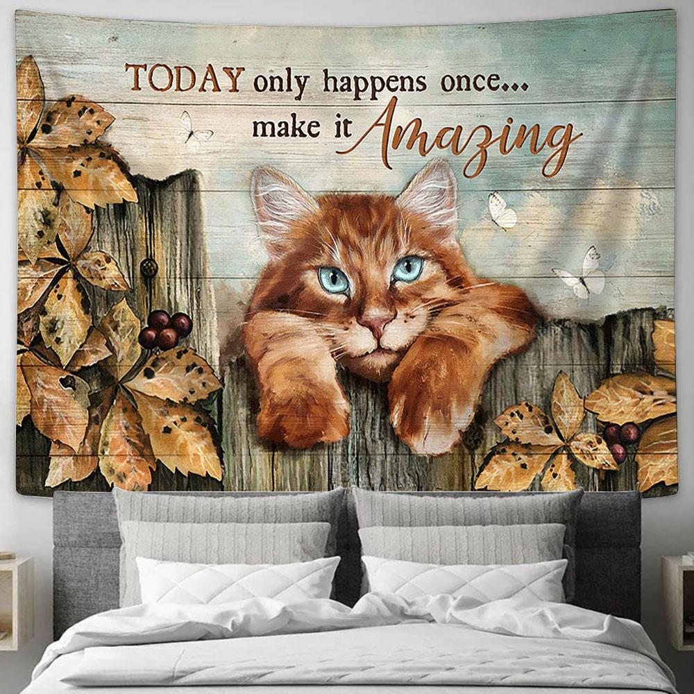 Tabby Cat Today Only Happens Once Tapestry Painting - Christian Wall Art - Gifts For Cat Lovers