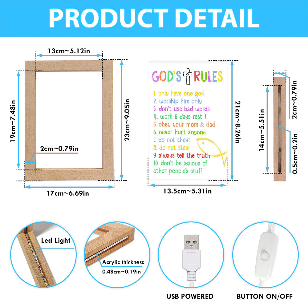Ten Commandments Frame Lamp Art For Kids - Gods Rules Decor - Kids Art