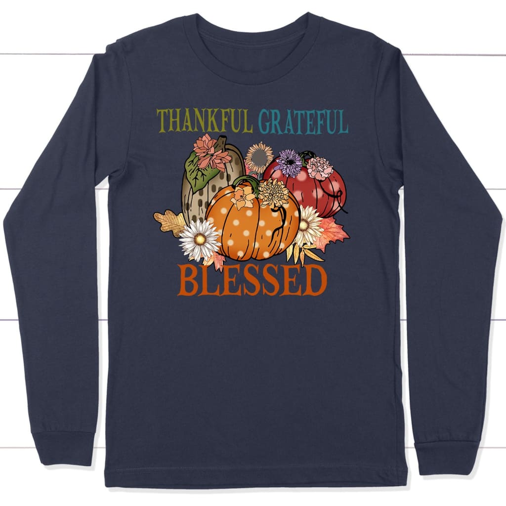 Thankful Grateful Blessed Polka Dot Pumpkin Long Sleeve Shirt