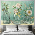 Thankful Grateful Blessed Tapestry Wall Art - Butterfly Flower - Christian Wall Decor