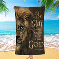 The Amazing Lion Painting Be Still And Know That I Am God Beach Towel, Christian Beach Towel, Christian Gift, Gift For Women