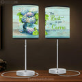 The Best Is Yet To Come Blue Hydrangea Butterfly Table Lamp Art - Christian Lamp Gift Decor - Bible Verse Table Lamp