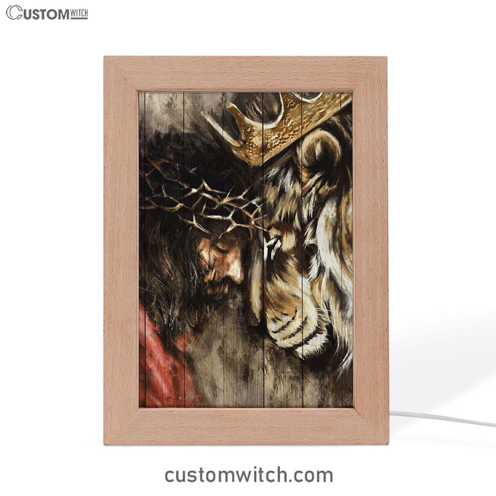 The Combination Of Jesus And Lion Frame Lamp Prints - Jesus Christ Frame Lamp Art - Christian Decor