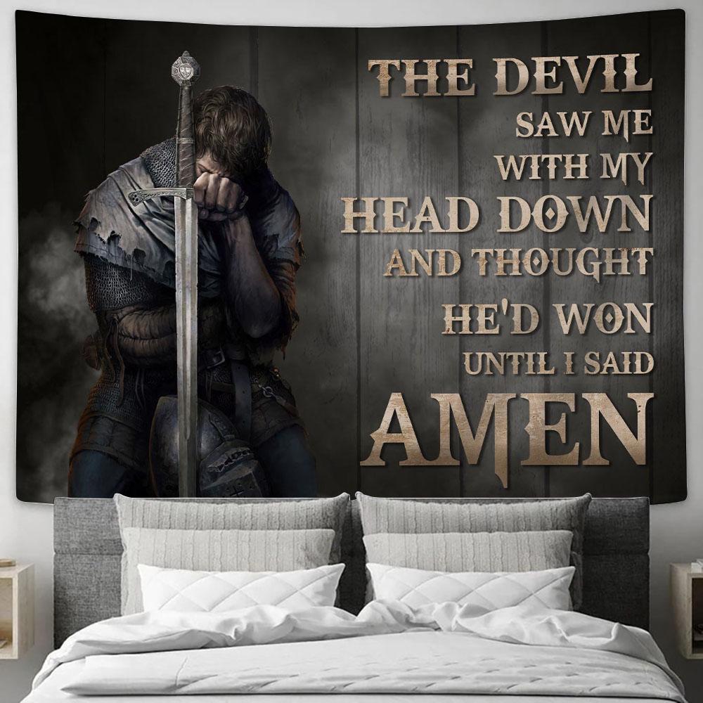 The Devil Saw Me With My Head Down Knight Kneel Tapestry Art - Christian Wall Art - Religious Wall Decor