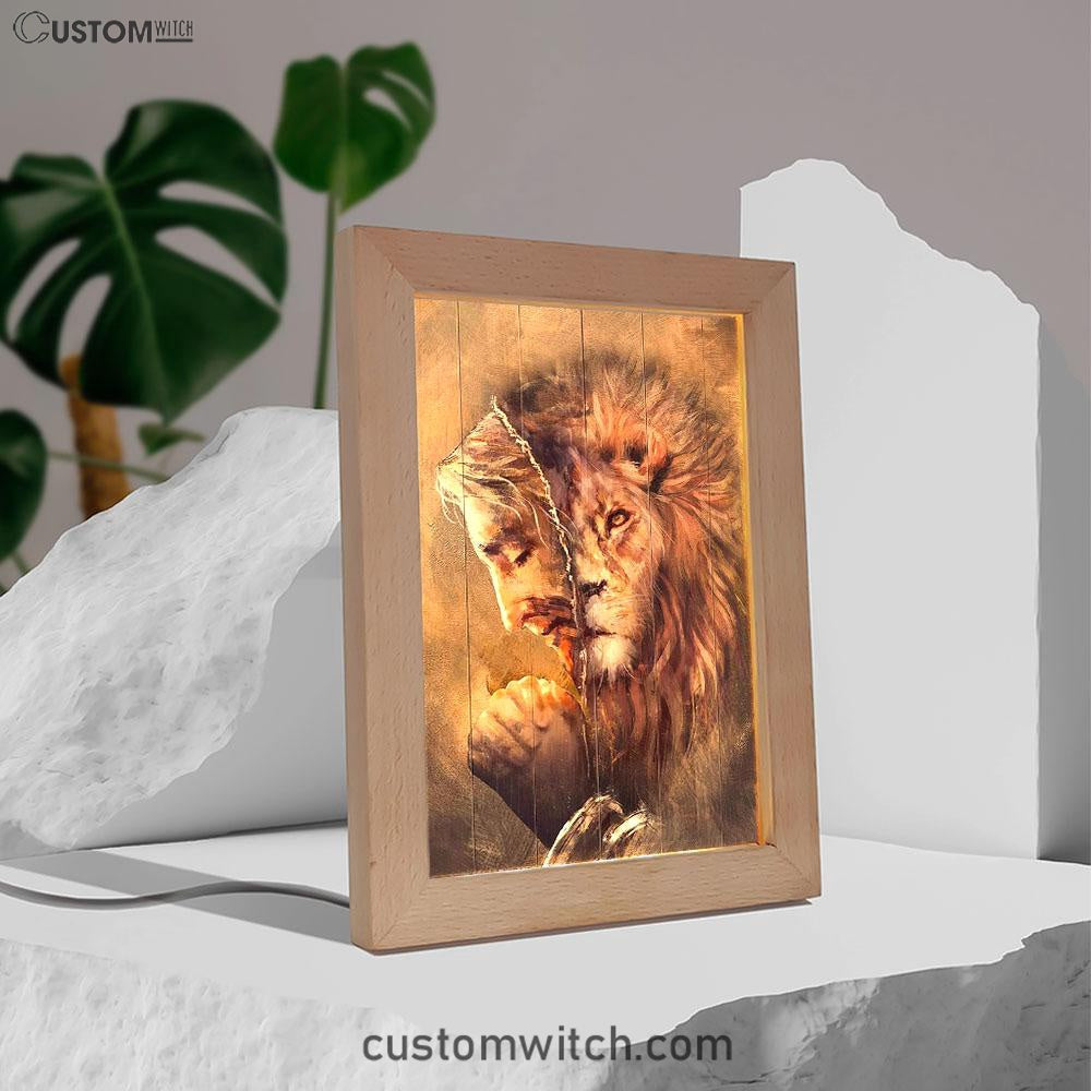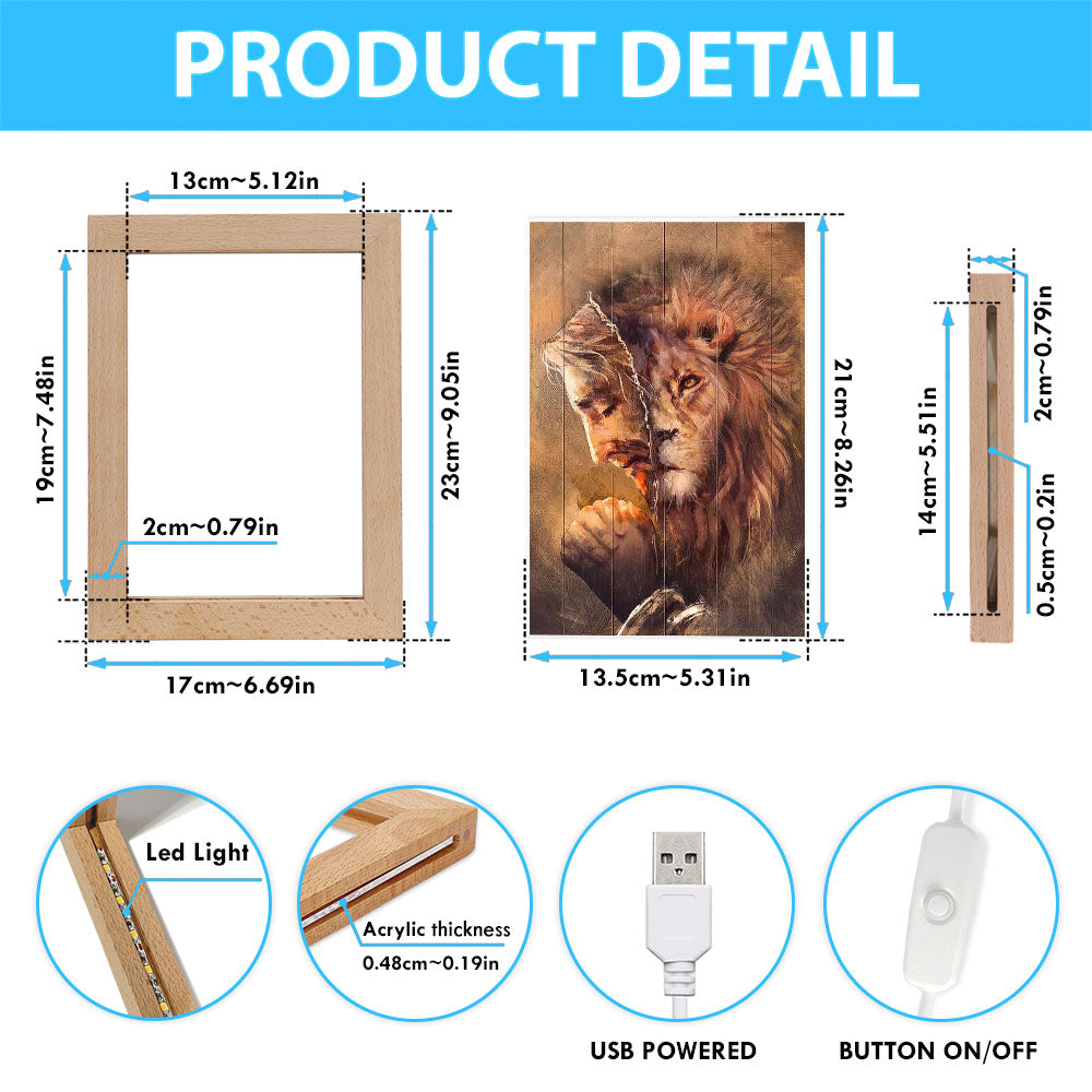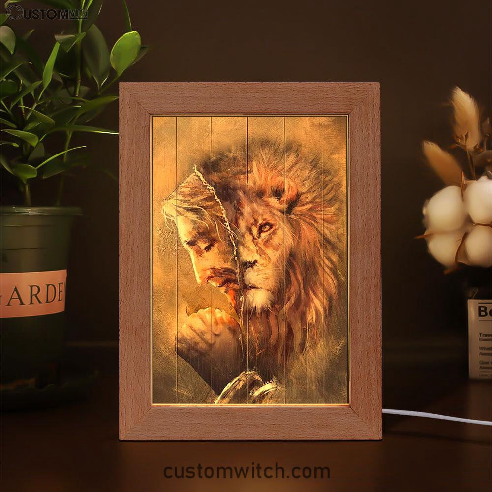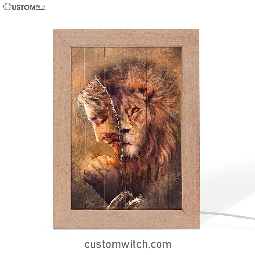 The Face Lion And Jesus Prays Frame Lamp Prints - Lion Frame Lamp Art - Christian Inspirational Frame Lamp