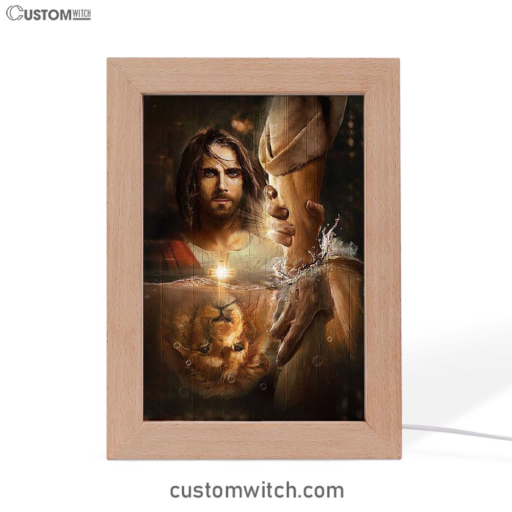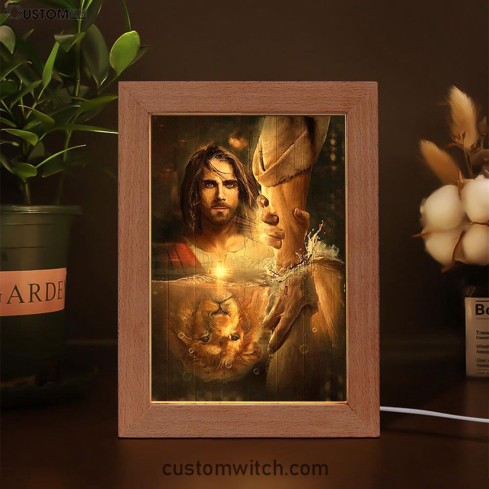 The Hand Of God Frame Lamp - Lion Of Judah Jesus Frame Lamp - Christian Art - Religious Home Decor
