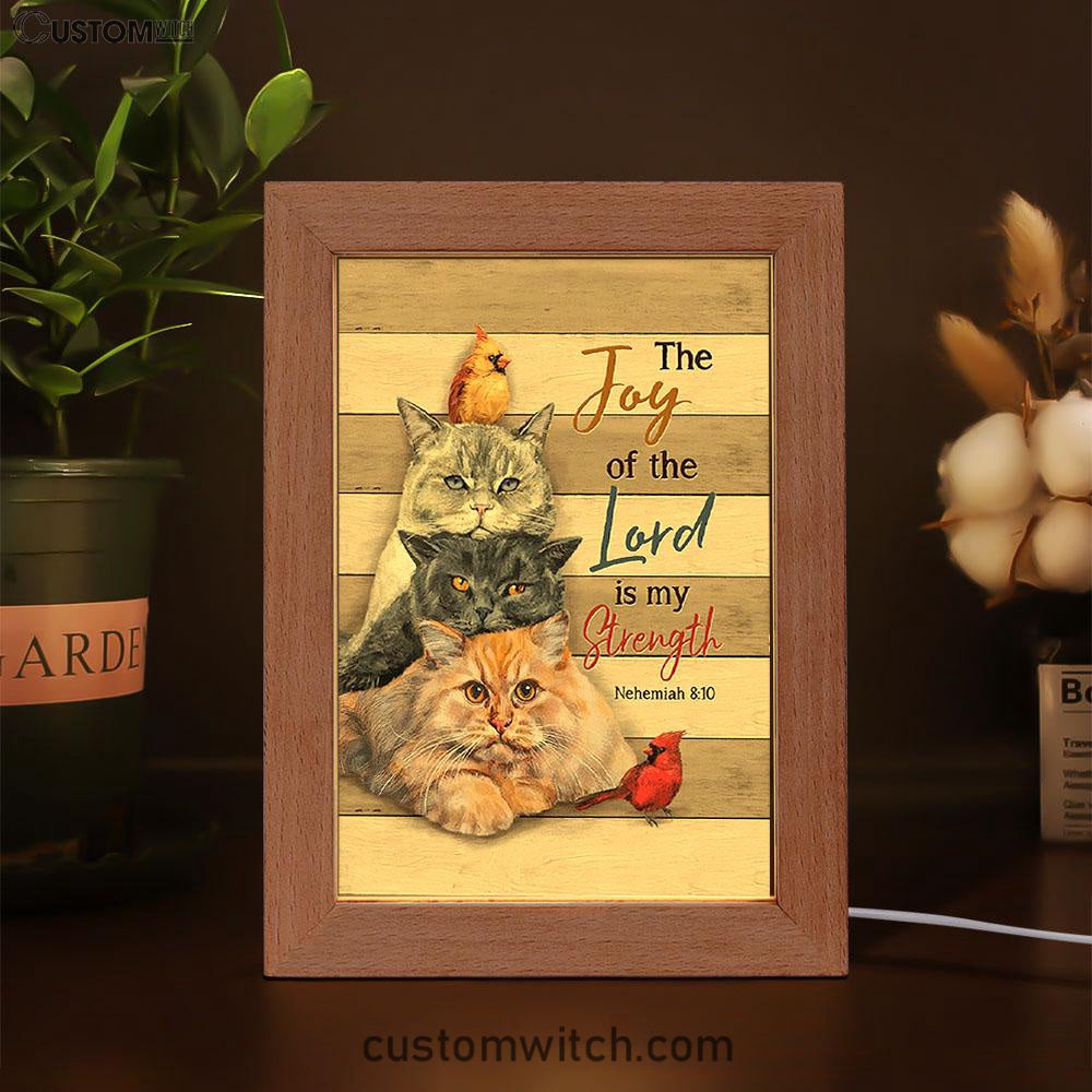 The Joy Of The Lord Is My Strength Frame Lamp - Angry Cat Cardinal Painting Frame Lamp Art - Christian Night Light