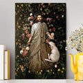 The Life Of Jesus And White Sheep Flower Garden Canvas Print - Inspirational Canvas Art - Christian Wall Art Home Decor