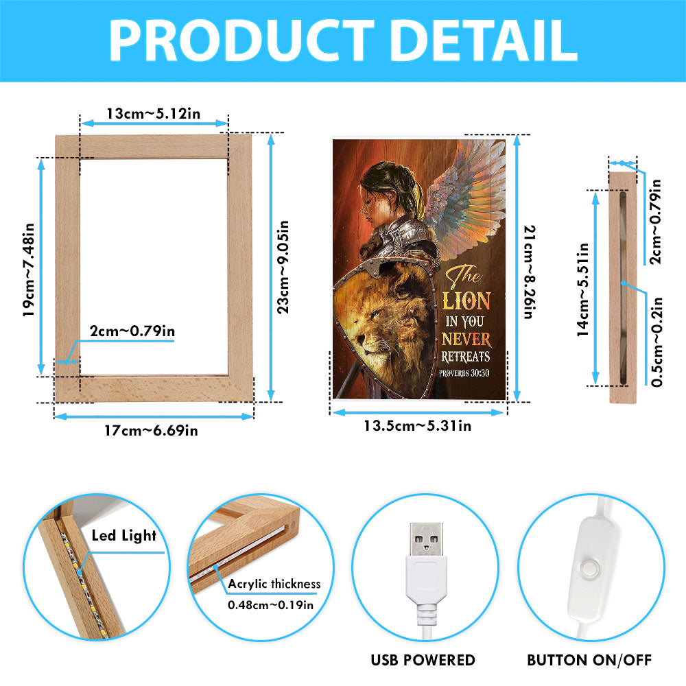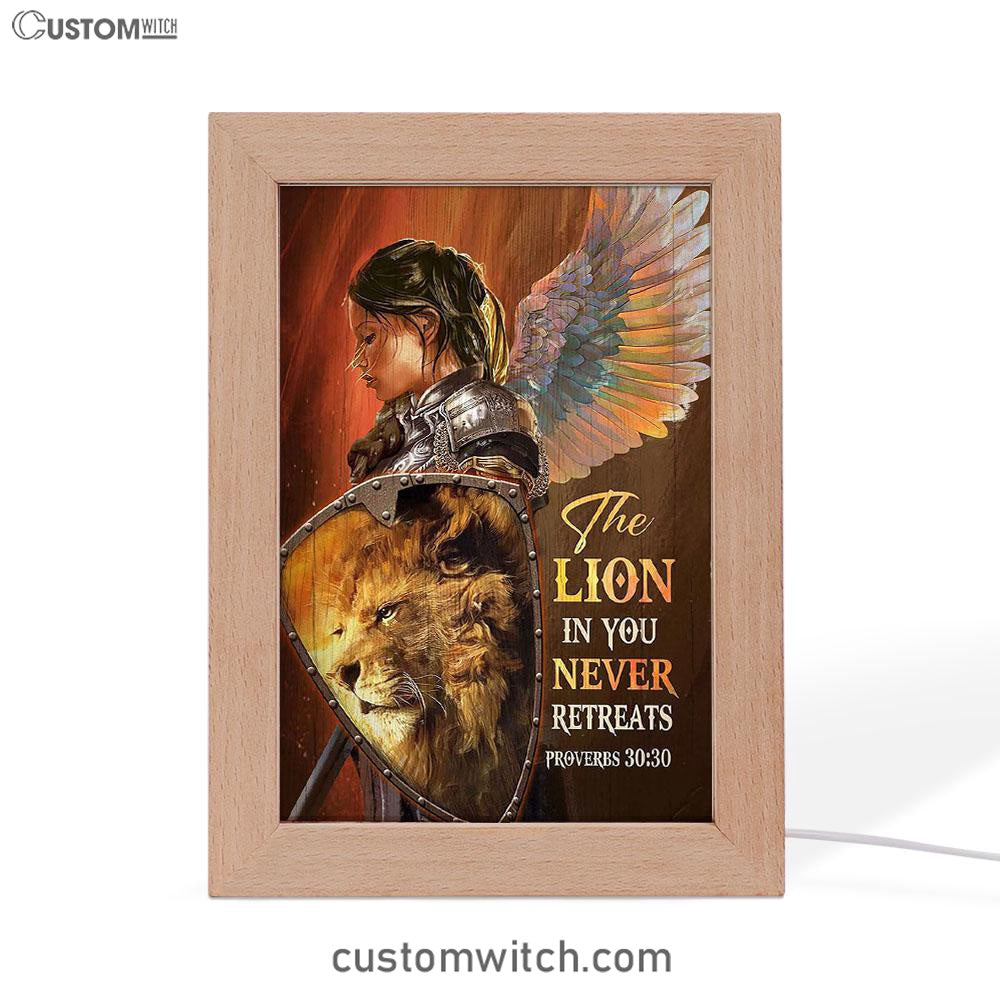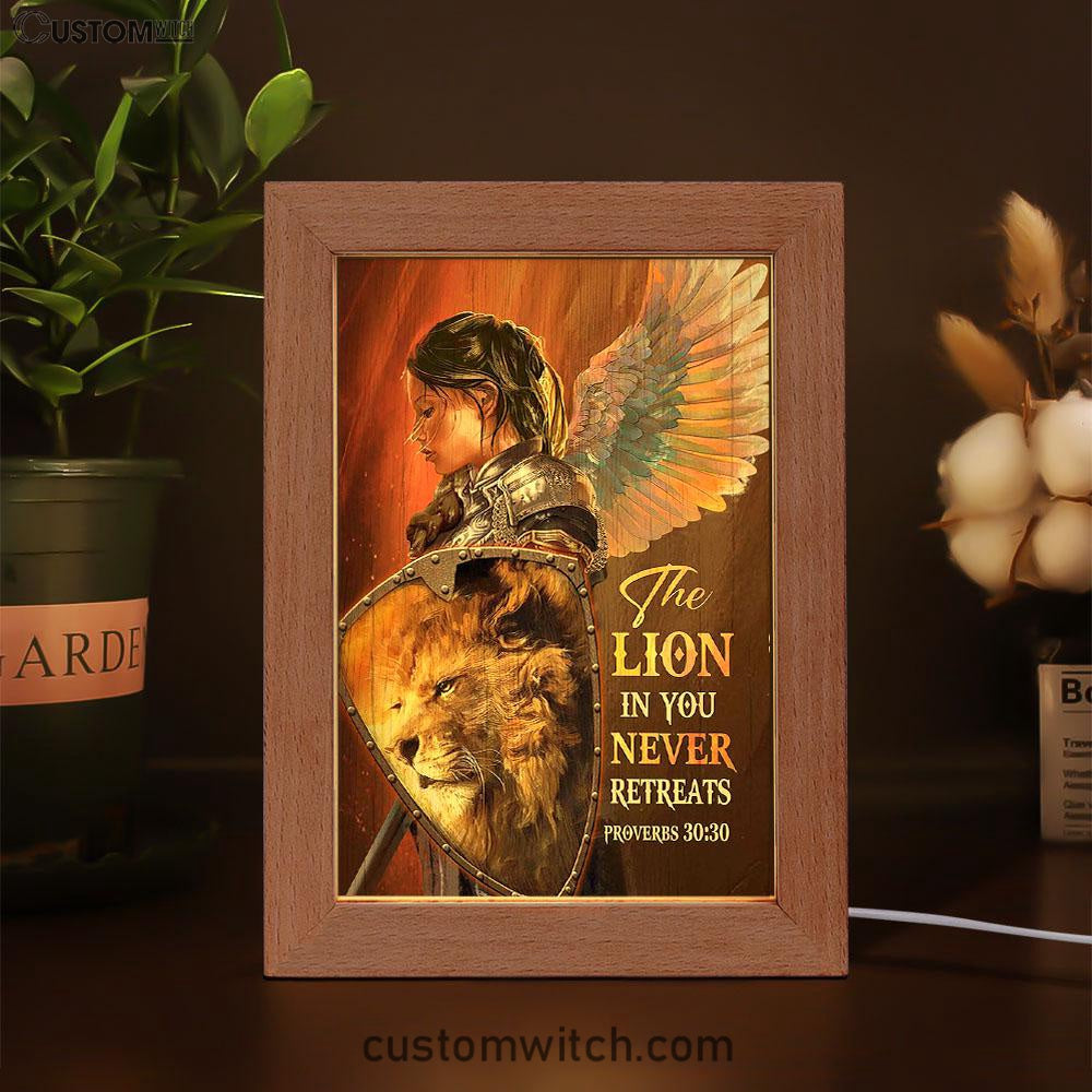 The Lion In You Never Retreats - Woman Warrior Lion Of Judah Frame Lamp Art - Christian Art - Bible Verse Art - Religious Home Decor