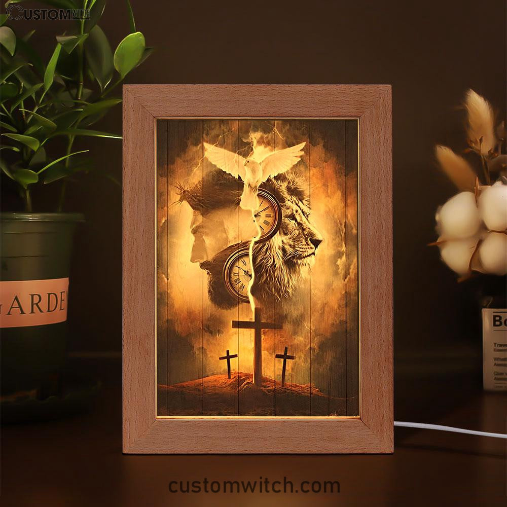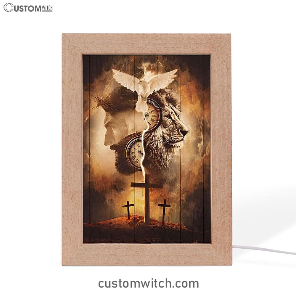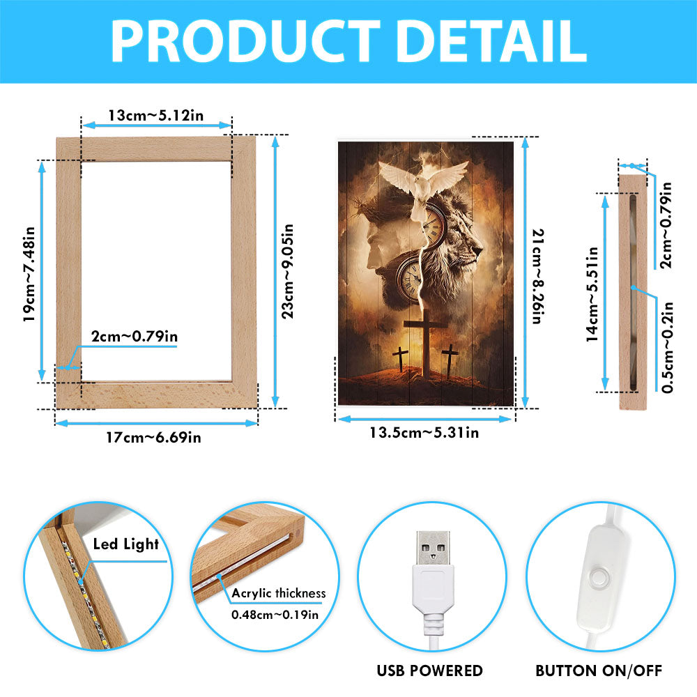 The Lion King Jesus Cross Frame Lamp Prints - Lion Frame Lamp Art - Christian Inspirational Frame Lamp
