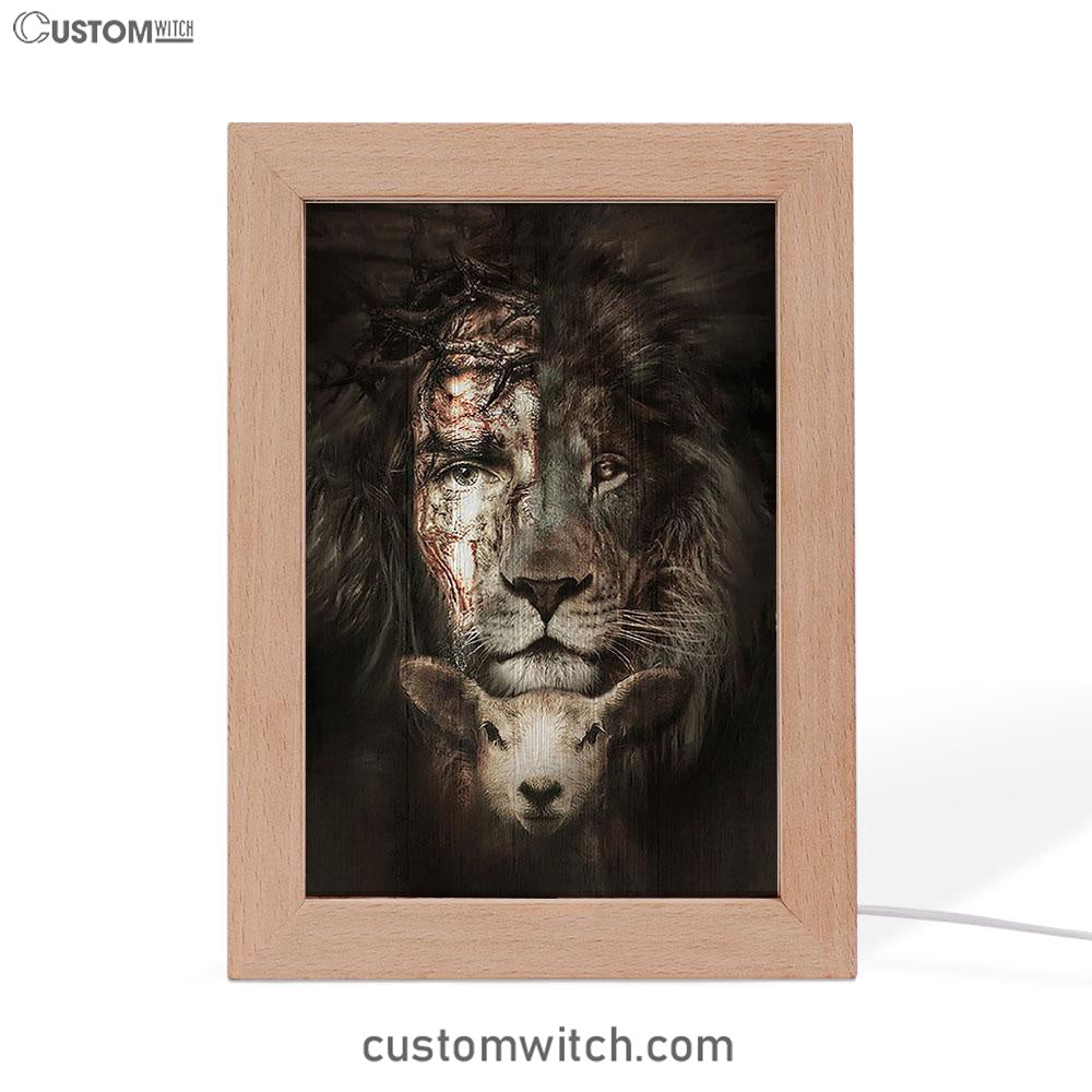 The Lion Of Judah And Lamb Frame Lamp - Christian Art - Religious Home Decor