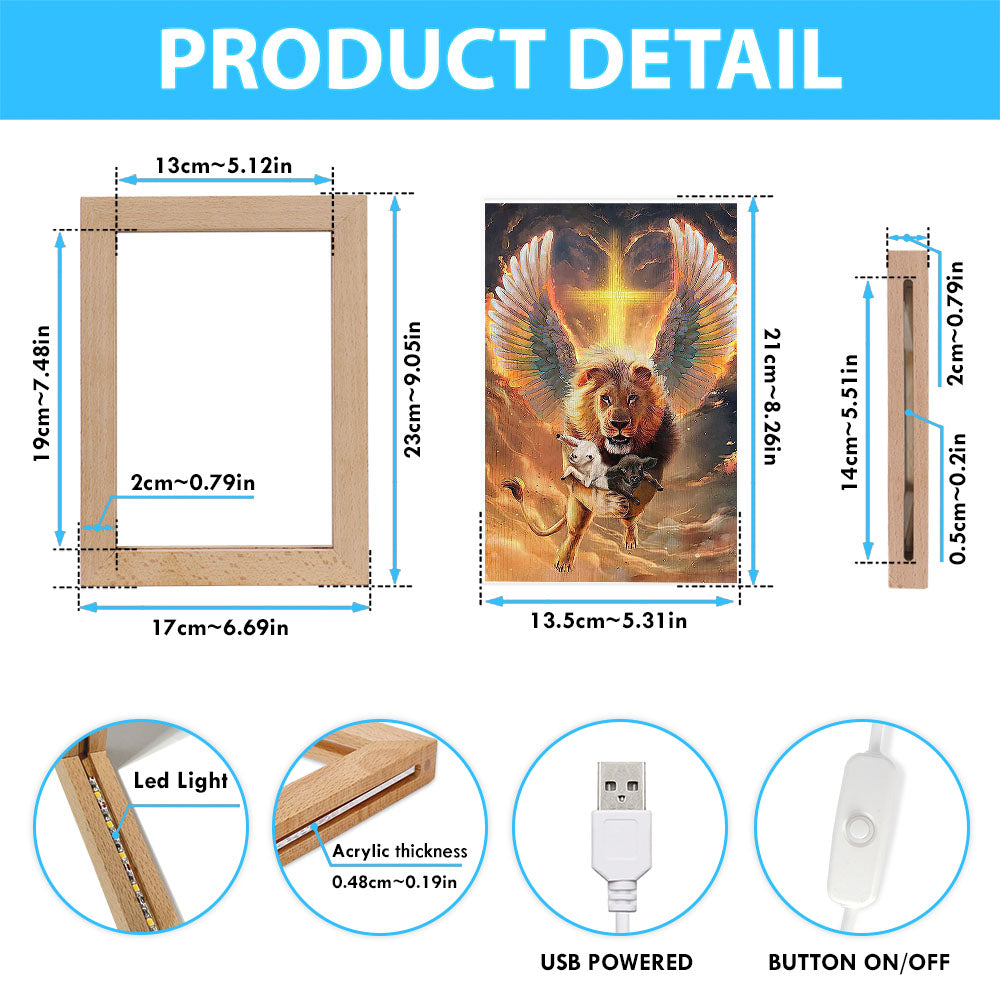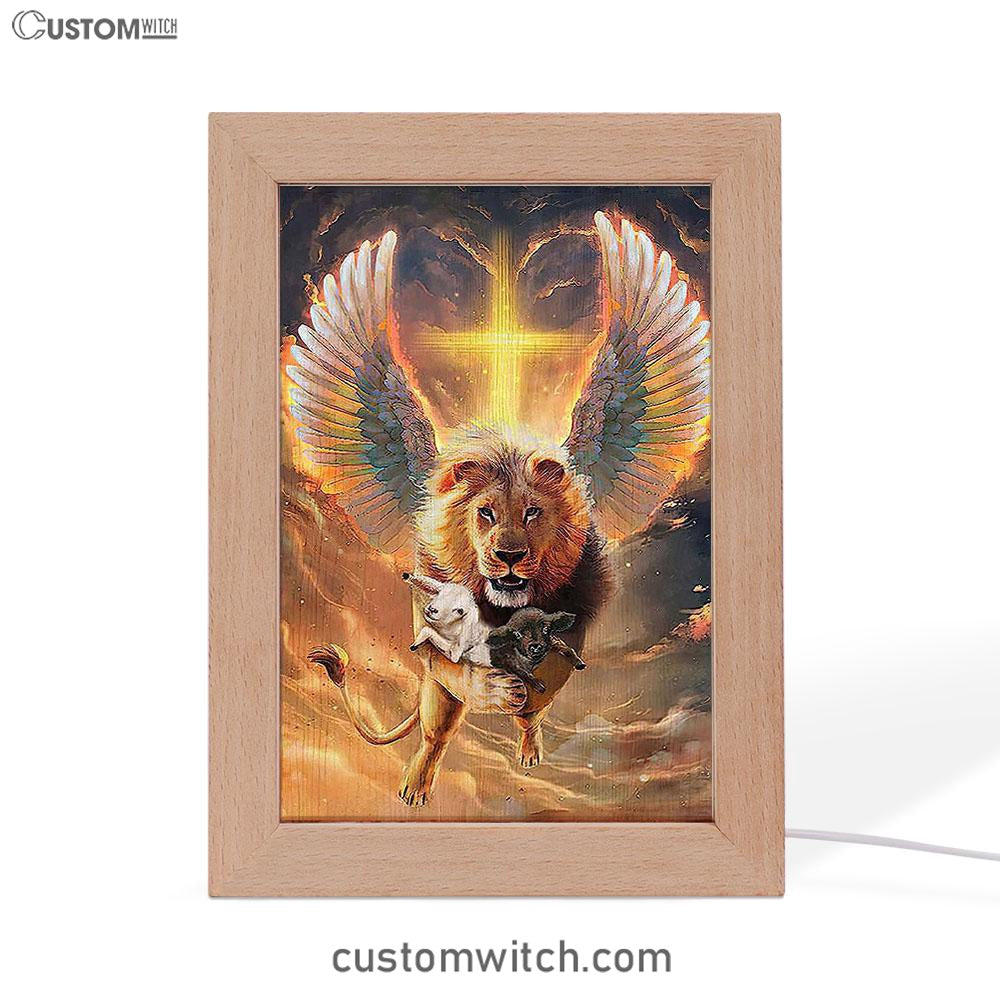 The Lion Wing Lambs Cross Frame Lamp Prints - Lion Frame Lamp Art - Christian Inspirational Frame Lamp