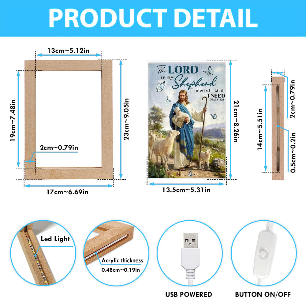 The Lord Is My Shepherd I Have All That I Need Walking With Lambs Jesus Frame Lamp Prints - Jesus Christ Frame Lamp Art - Christian Decor