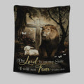 The Lord Is On My Side Tapestry - Lion Lamb Of God Wooden Cross Tapestry Print - Inspirational Tapestry Art - Christian Wall Art Home Decor