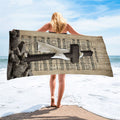 The Old Rugged Cross Beach Towel - Black Cross White Silk Music Sheet Beach Towel - Bible Verse Beach Towel - Christian Beach Towel