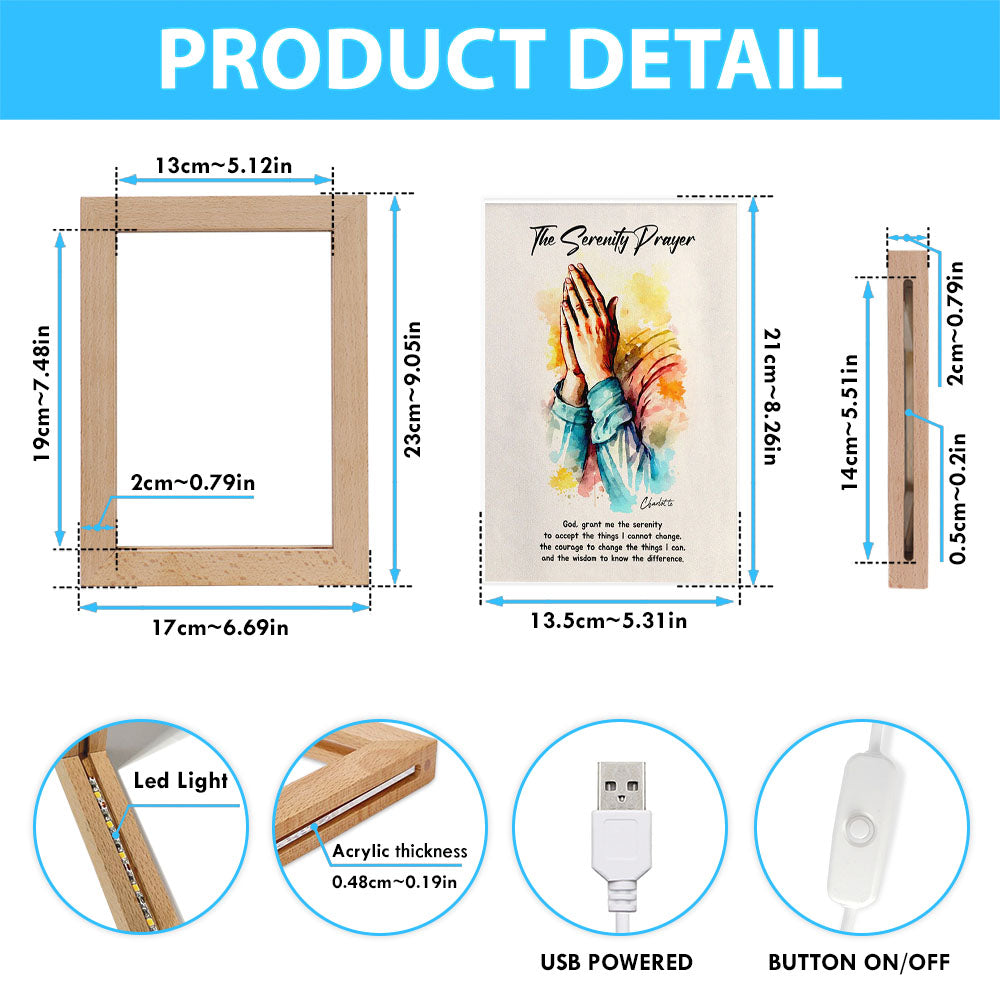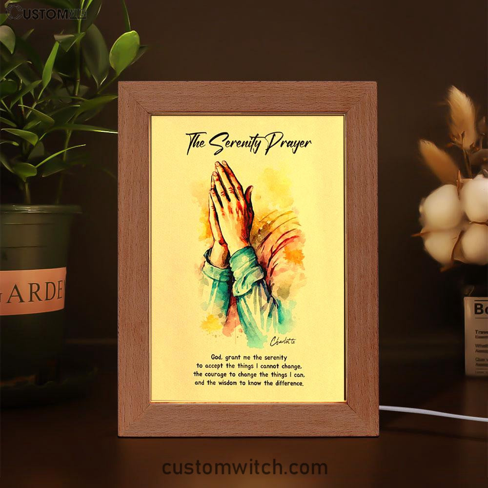 The Serenity Prayer Praying Hands Personalized Frame Lamp Art - Christian Night Light - Bible Verse Gift For Women Of God