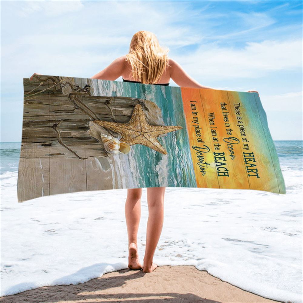 There Is A Piece Of My Heart Starfish Blue Ocean Sunset Beach Towel - Christian Beach Towel - Bible Verse Beach Towel