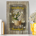 There Is Always Something For Which To Be Thankful Daisy White Butterfly Canvas Print - Inspirational Canvas Art - Christian Wall Art Home Decor