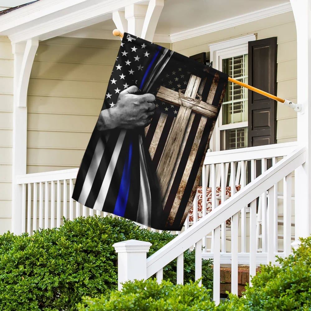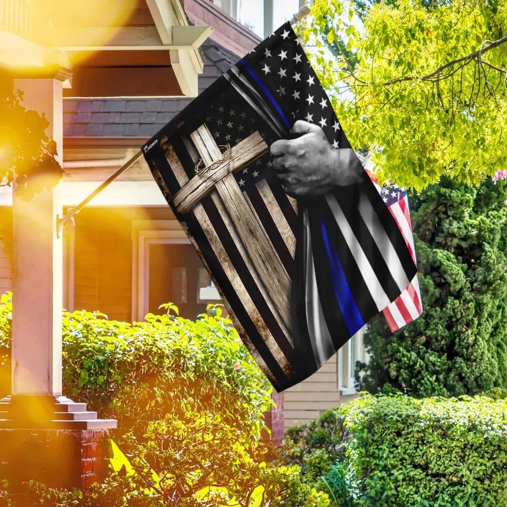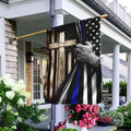 Thin Blue Line Christian Cross House Flags, Christian Flag, Scripture Flag, Garden Banner