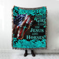 This Girl Runs On Jesus And Horses America Horse Cross Woven Blanket Prints - Jesus Christ Woven Blanket Art - Christian Boho Blanket