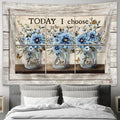 Today I Choose Faith Over Fear Blue Flower Butterfly Wall Art Tapestry - Christian Wall Art - Religious Art