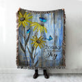 Today I Choose Joy Blue Butterfly Sunflower Woven Throw Blanket - Bible Verse Woven Blanket Art - Inspirational Art - Christian Home Decor
