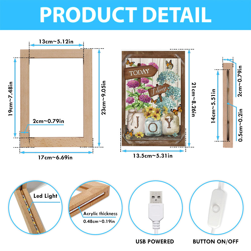 Today I Choose Joy Blue Hydrangea Butterfly Frame Lamp Art - Bible Verse Wooden Lamp - Inspirational Art - Christian Home Decor
