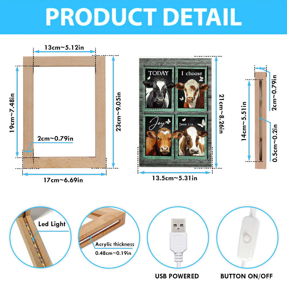 Today I Choose Joy Cow Mint Window Butterfly Frame Lamp Art - Bible Verse Wooden Lamp - Inspirational Art - Christian Home Decor