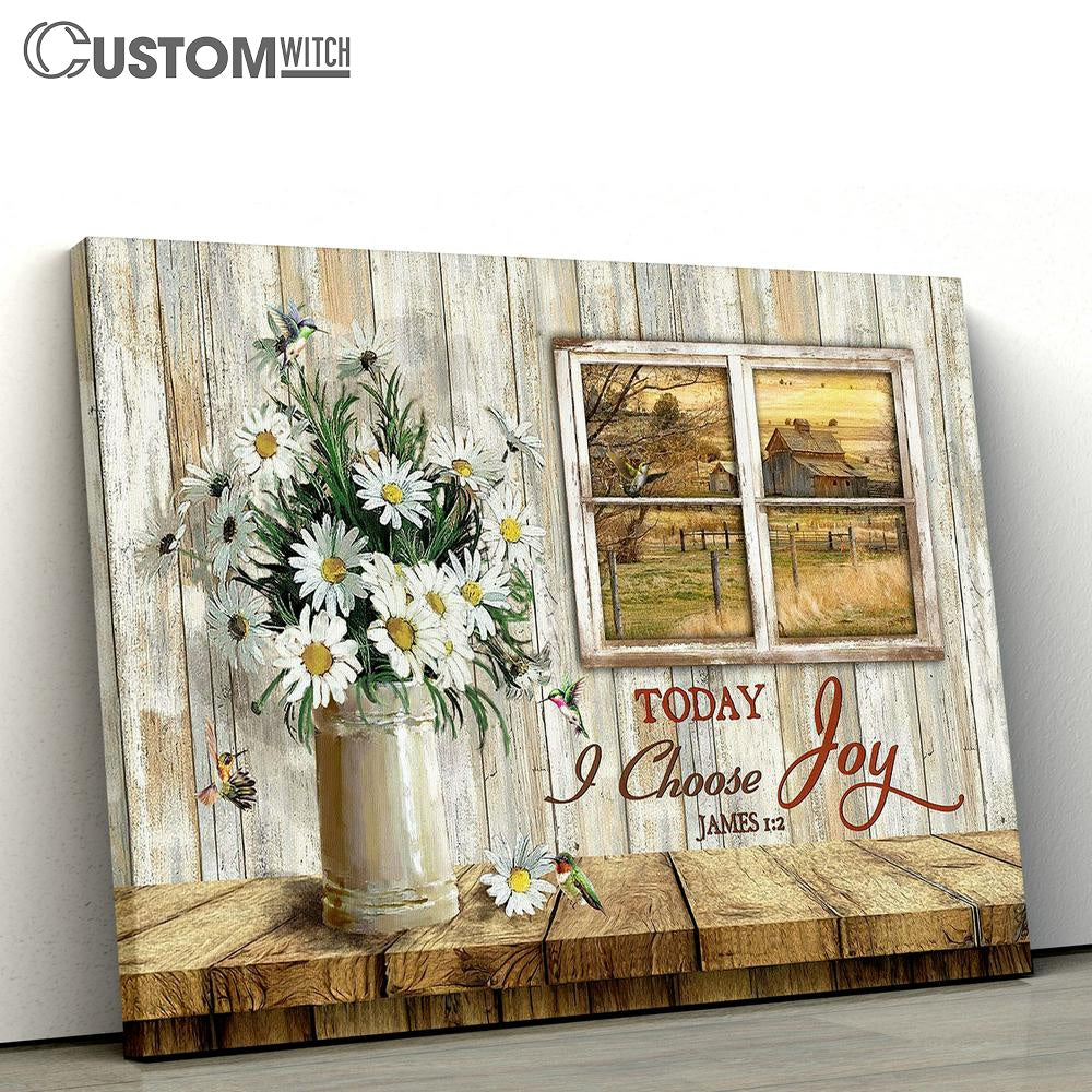 Today I Choose Joy Daisy Vase Window Frame Canvas Wall Art - Bible Verse Canvas - Religious Prints