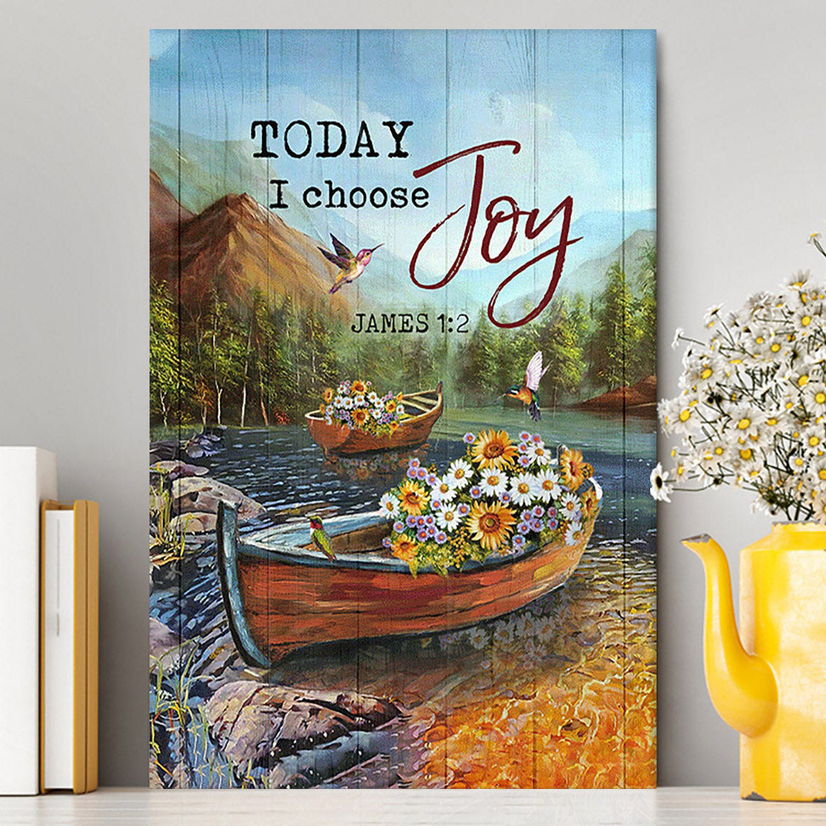 Today I Choose Joy Fishing Boat Flower Hummingbird Canvas Print - Inspirational Canvas Art - Christian Wall Art Home Decor