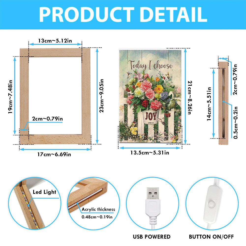 Today I Choose Joy Flower Pot Hummingbird Frame Lamp Print - Inspirational Frame Lamp Art - Christian Art Home Decor