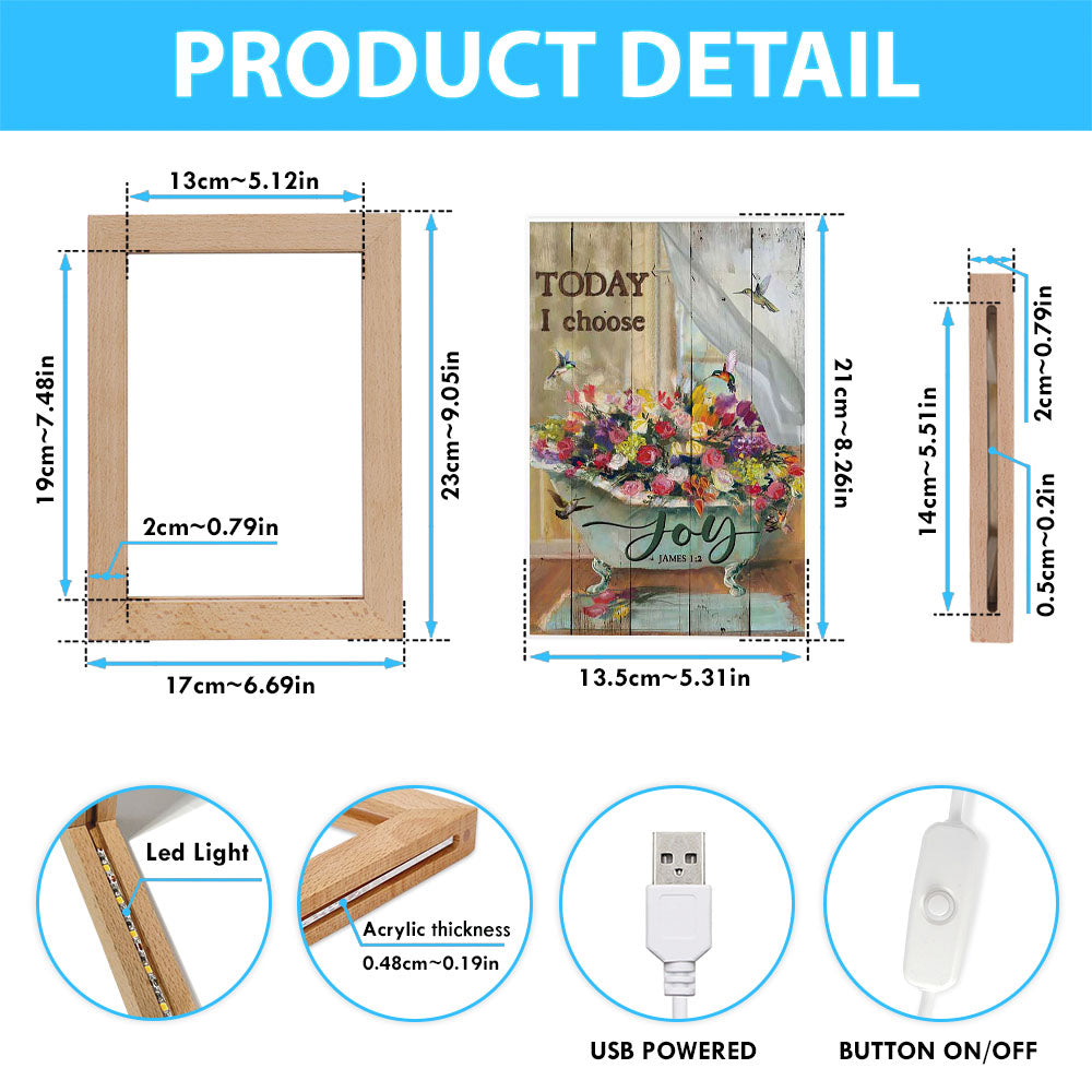 Today I Choose Joy Hummingbird Flowers In Bathtub Rose Frame Lamp Print - Inspirational Frame Lamp Art - Christian Art Home Decor
