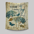 Today I Choose Joy Hydrangea Blue Butterfly Tapestry Print - Inspirational Tapestry Art - Christian Wall Art Home Decor