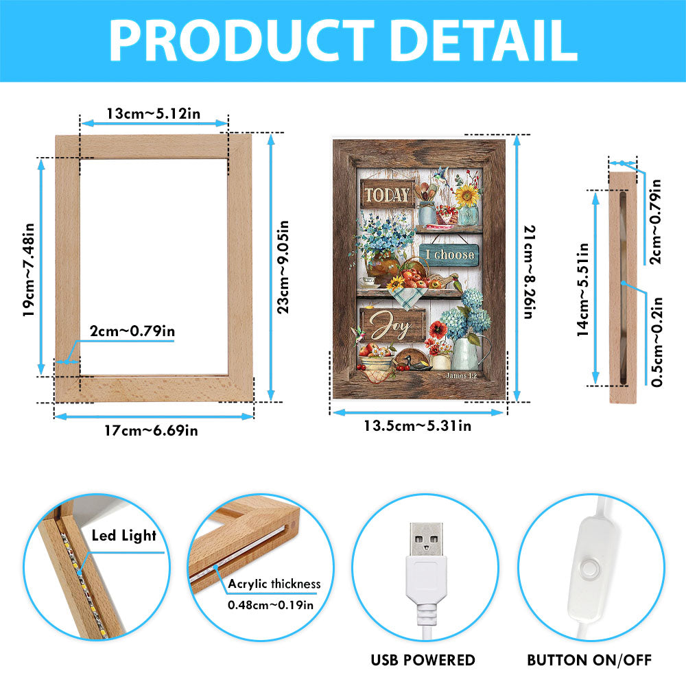 Today I Choose Joy Kitchen Blue Hydrangea Frame Lamp Art - Bible Verse Wooden Lamp - Inspirational Art - Christian Home Decor