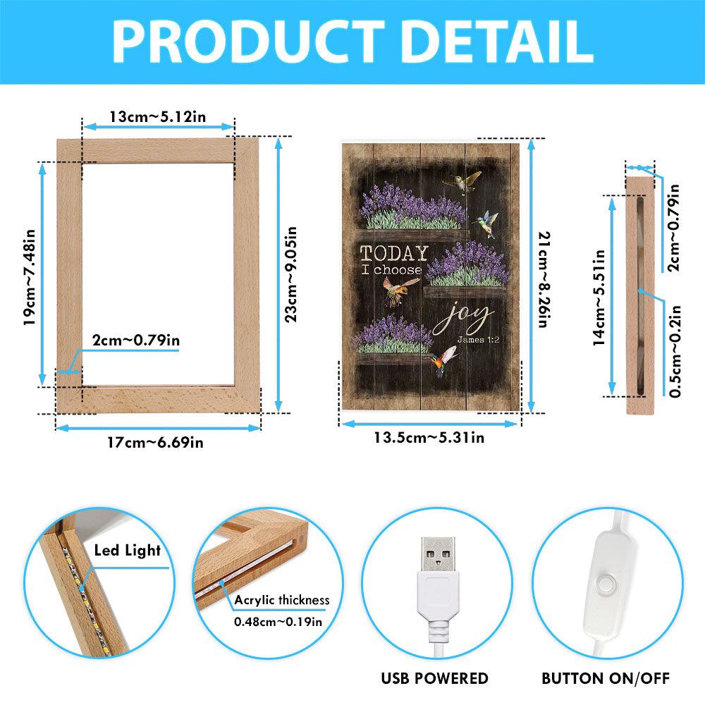 Today I Choose Joy Lavender Flower Hummingbird Frame Lamp Print - Inspirational Frame Lamp Art - Christian Art Home Decor