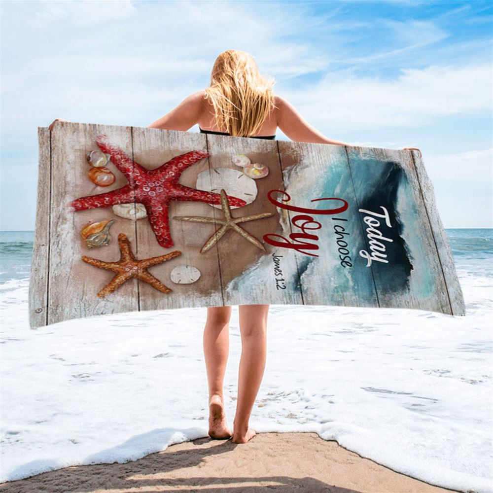 Today I Choose Joy Starfish Blue Ocean Beach Towel - Inspirational Beach Towel - Christian Beach Towel