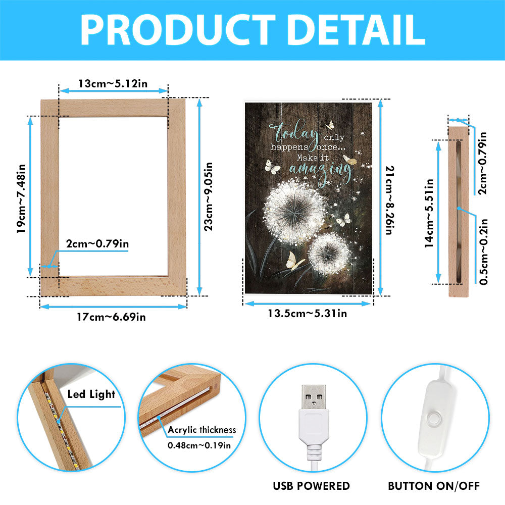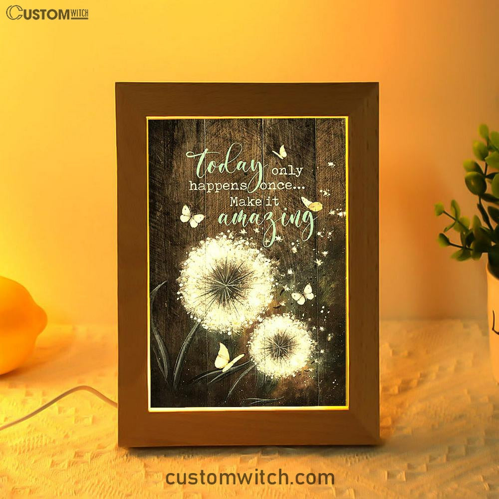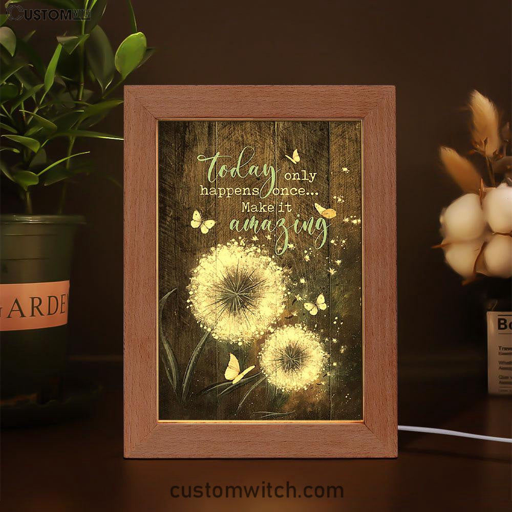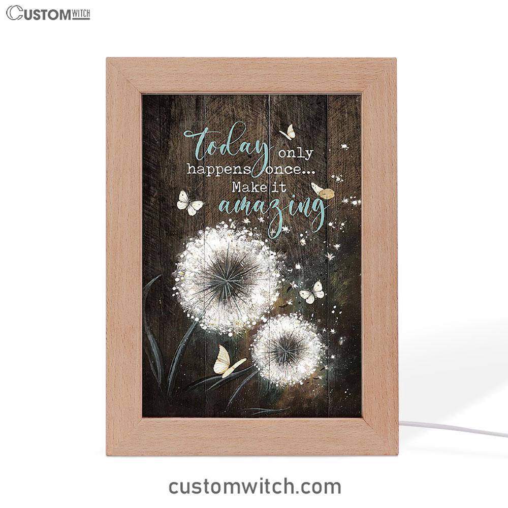 Today Only Happens Once Make It Amazing Dandelion White Butterfly Frame Lamp Print - Inspirational Frame Lamp Art - Christian Art Home Decor