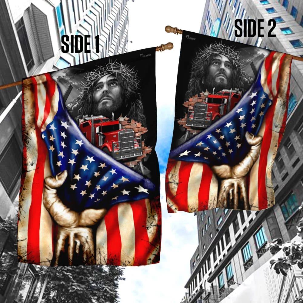 Trucker Christian House Flag, Outdoor Religious Flags, Christian Flag, Scripture Flag, Garden Banner