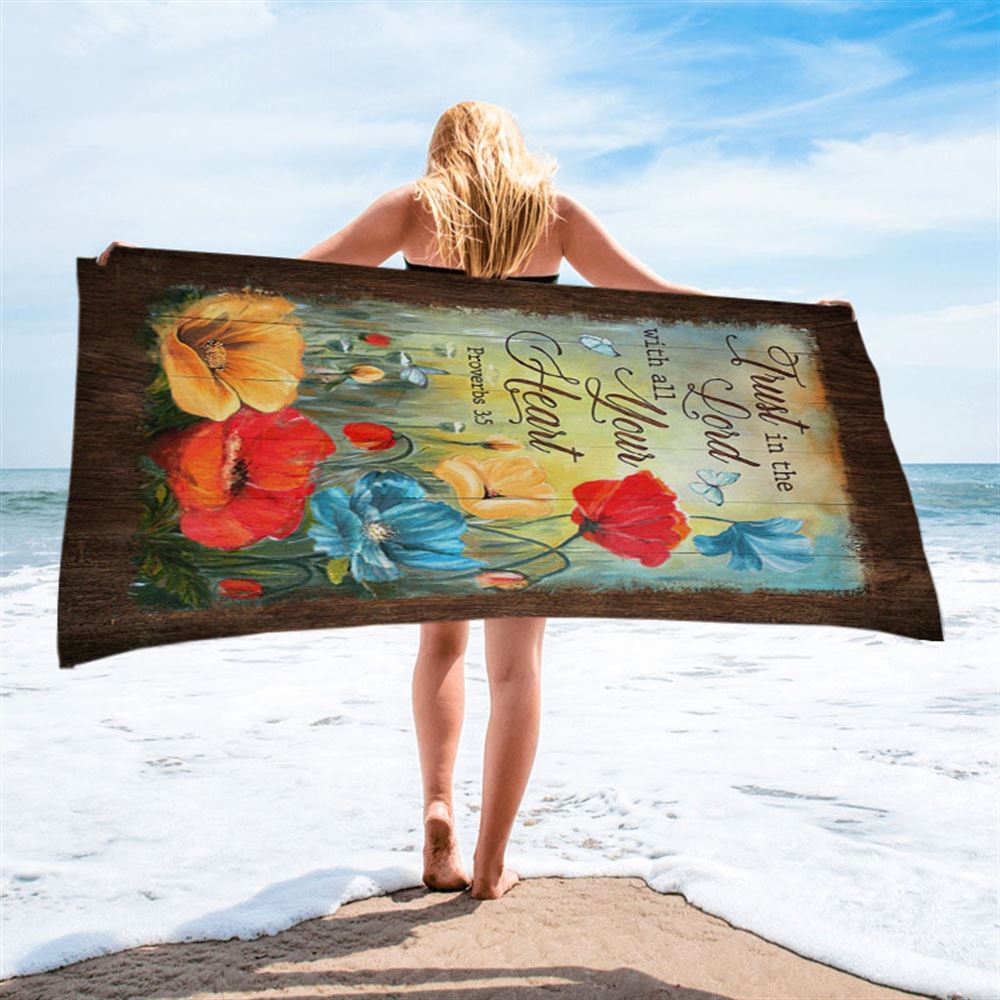 Trust In Lord With All Your Heart Poppy Butterfly Beach Towel - Inspirational Beach Towel - Christian Beach Towel