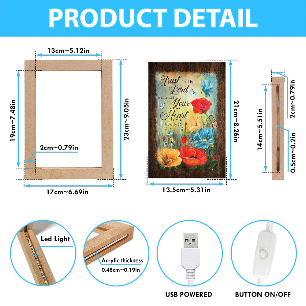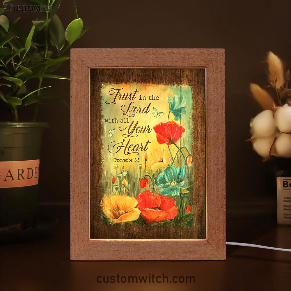Trust In Lord With All Your Heart Poppy Butterfly Frame Lamp Print - Inspirational Frame Lamp Art - Christian Art Home Decor