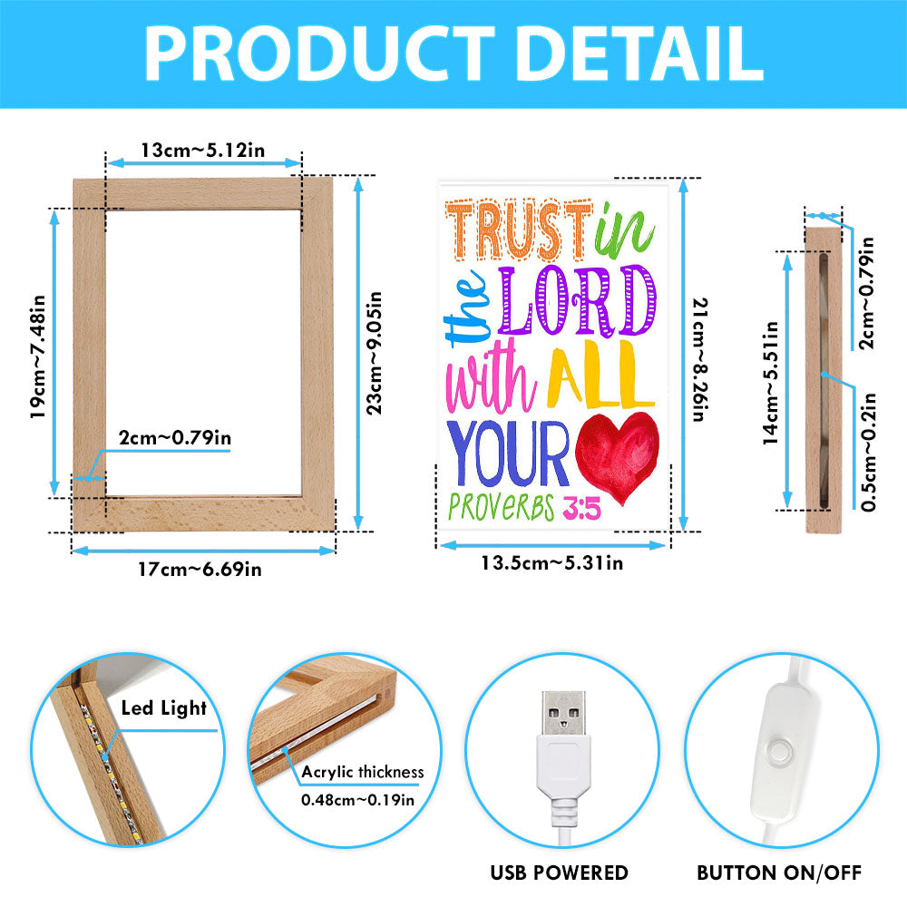 Trust In The Lord With All Your Heart Proverbs 3 15 Frame Lamp Prints - Christian Night Light Decor