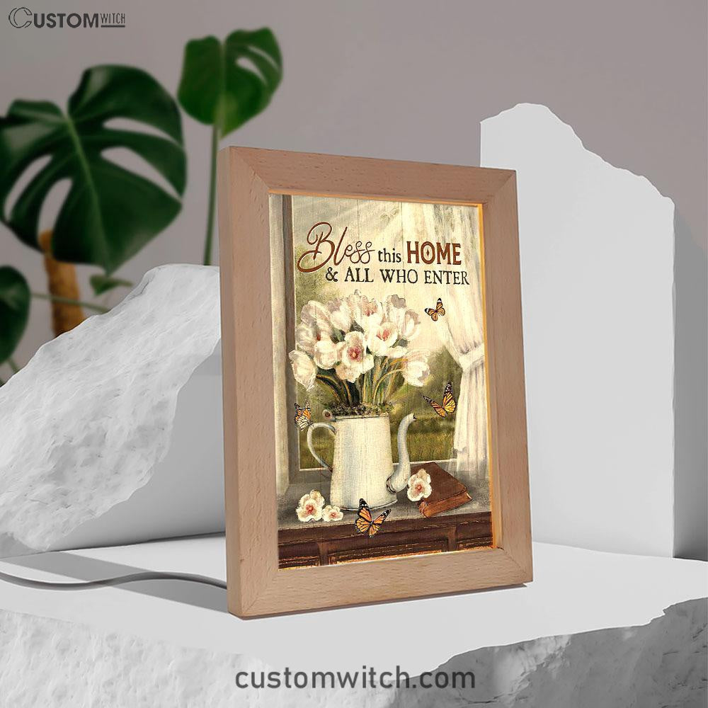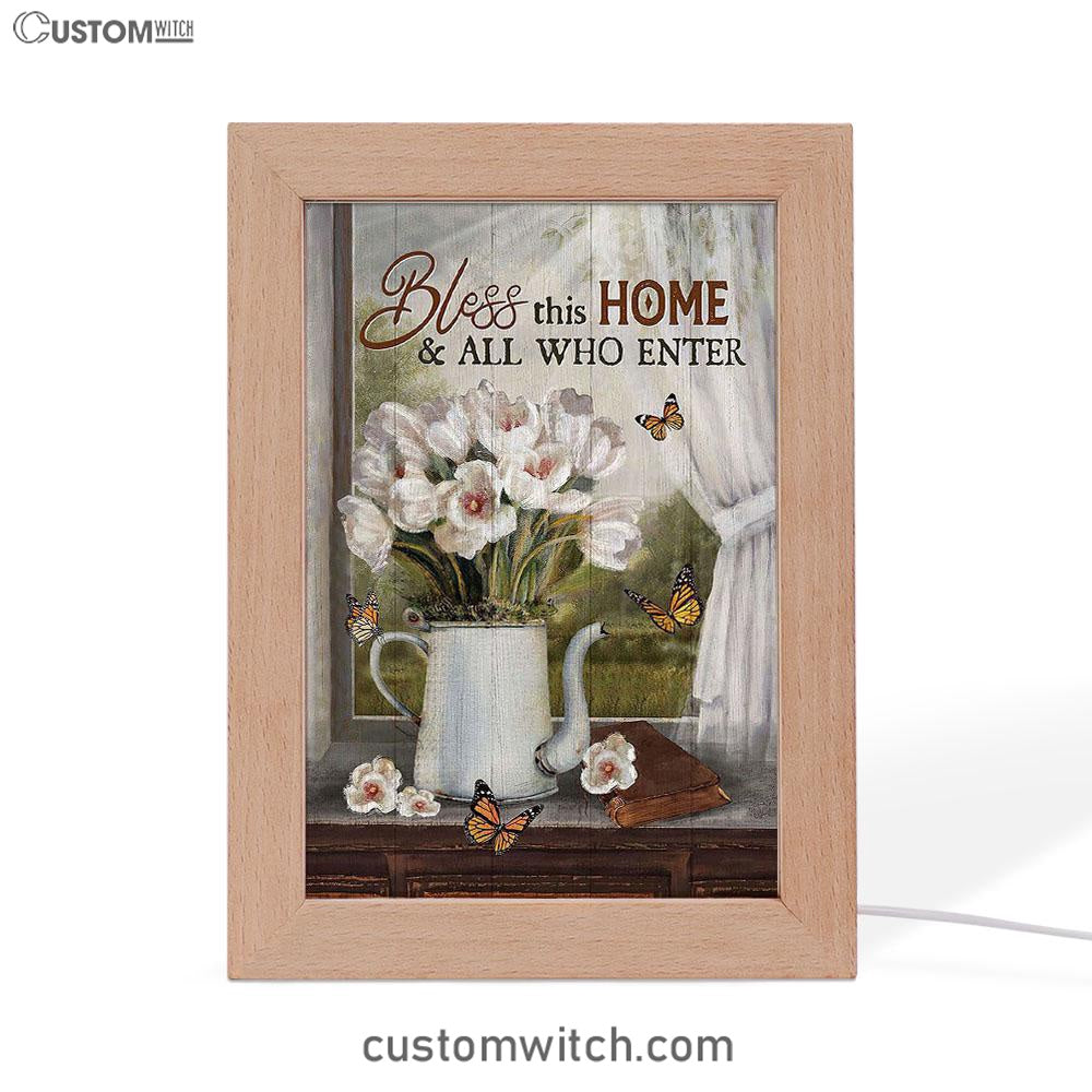 Tulip Butterfly Bless This Home Frame Lamp Art - Christian Art - Bible Verse Art - Religious Home Decor