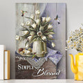 Tulip Vase Hummingbird Still Life - Simply Blessed Canvas Wall Art - Bible Verse Canvas Art - Inspirational Art - Christian Home Decor